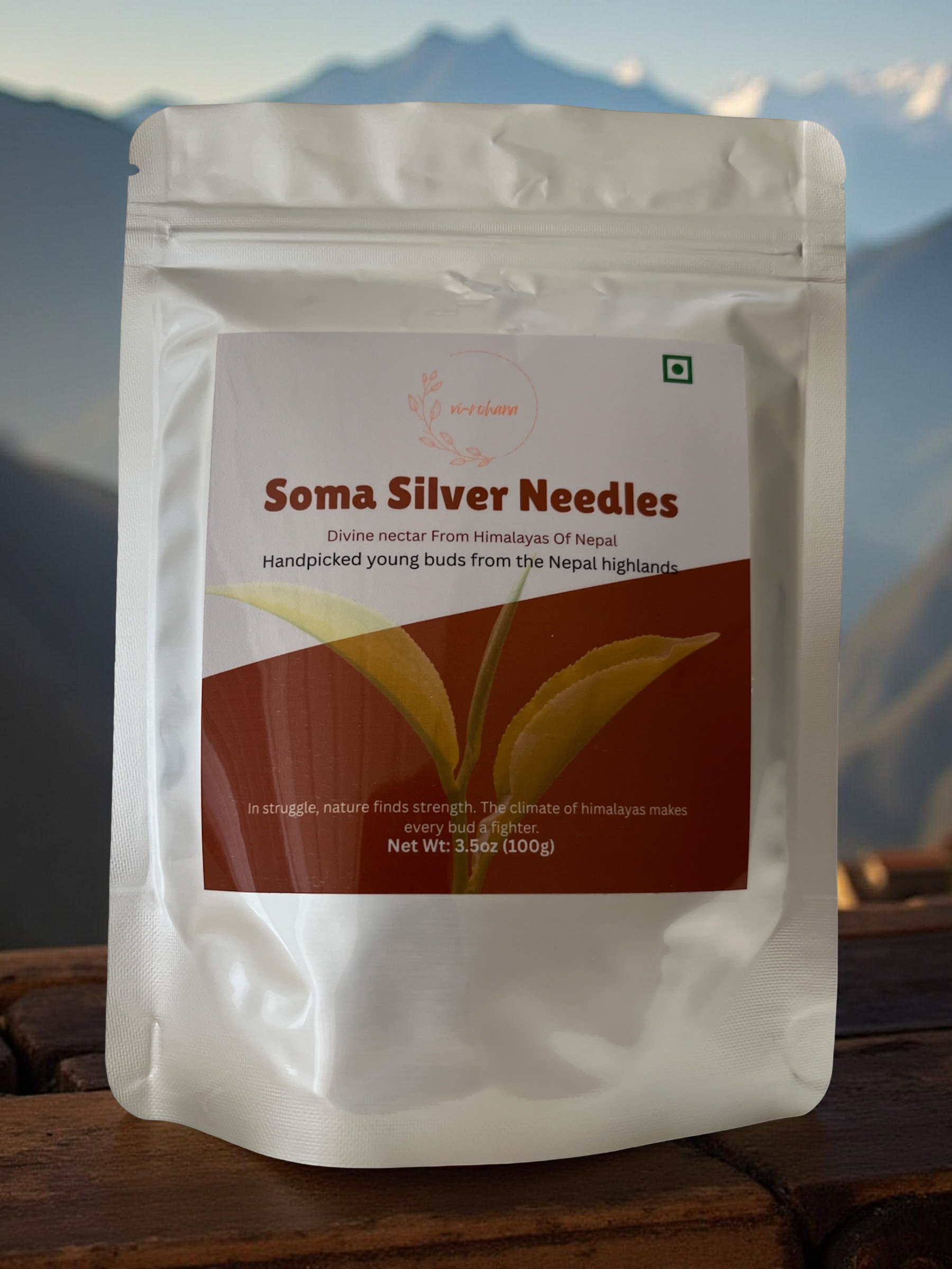 Silver Needles is a premium white tea known for its delicate flavor and elegant presentation. Hand-picked with great care from the first flush of spring buds, this tea is harvested from high-altitude bushes grown in the serene hills of Eastern Nepal — notably in Ilam, Dhankuta, and Panchthar, at elevations above 1500 meters. The buds come from a China hybrid variety and are rich with fine silvery hairs that give the tea its name. After careful harvesting, the buds are gently oxidized at low temperatures and dried with soft airflow to retain their freshness and unique aroma. Finally, they are slow-baked to produce a mellow, pale-yellow liquor that carries a soft note of toasted ripe bananas and a refreshing, dewy finish. Each sip of Silver Needles reflects the purity of Himalayan air, soil, and tradition — a true expression of terroir and craftsmanship.